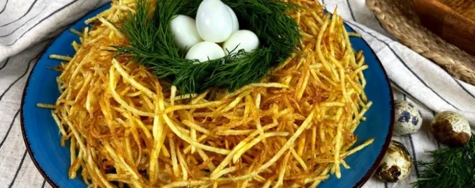 Originálny šalát „Tetrovacie hniezdo“ alebo „Prepeličie hniezdo“ je ideálnym variantom toho, čo pripraviť na sviatok. Recept je nekomplikovaný a dostupný pre každého. A výsledok je taký chutný, že nikto neodmietne prídavok.