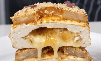 - Namiesto vyprážaných zemiakov môžete pokrm ozdobiť syrom. Nastrúhajte 300 g syra na hrubom strúhadle a posypte ním šalát „Hniezdo“.